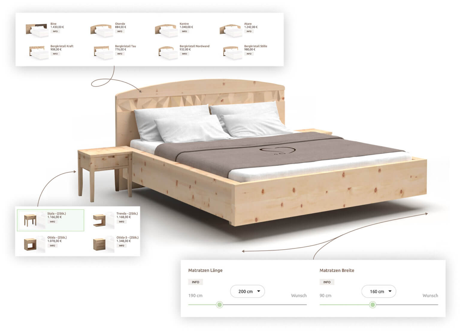 Mit unserem Zirbenbett-Konfigurator gestaltest du dein Bett genau nach deinen Wünschen – so passt dein Zirbenbett
